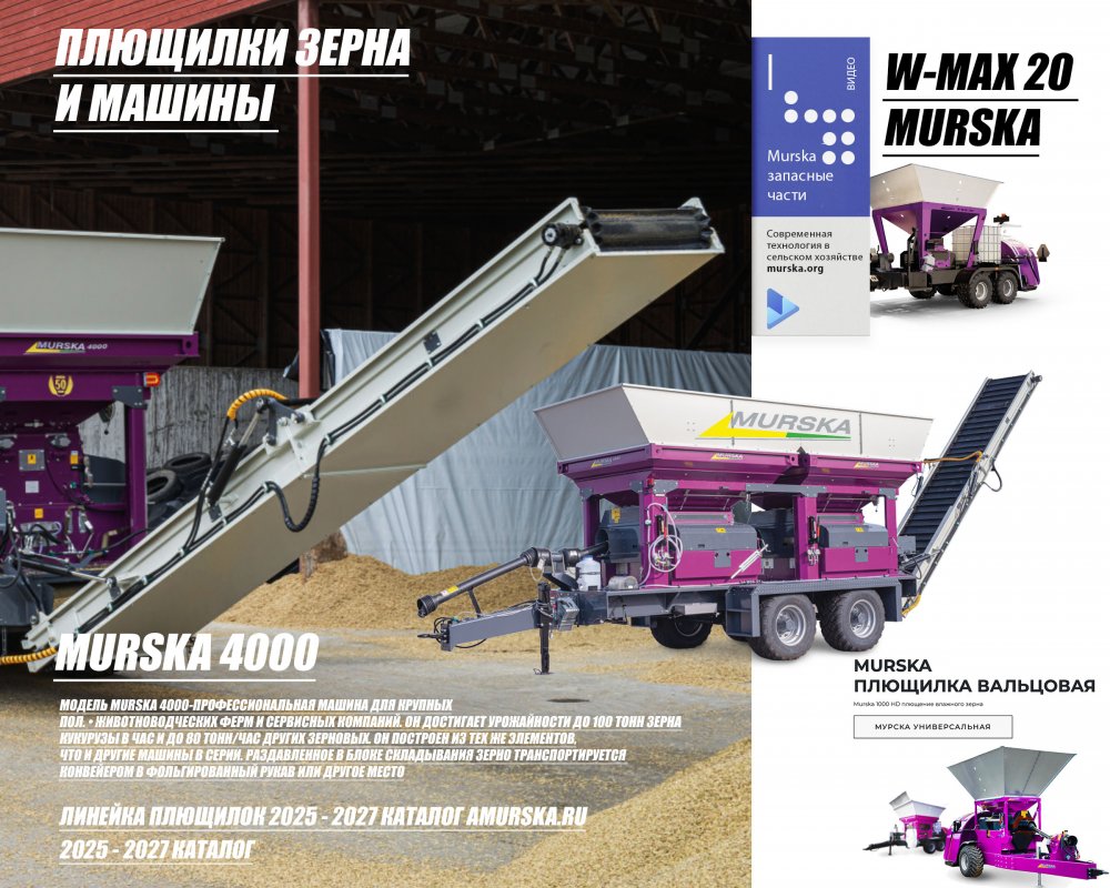Дисковая мельница плющилка Murska W-Max 20 С, с ленточным транспортером - эта совершенно новая модель, с дисковыми вальцами, ленточным транспортером, и транспортным шасси. Не имеет аналогов в мире!