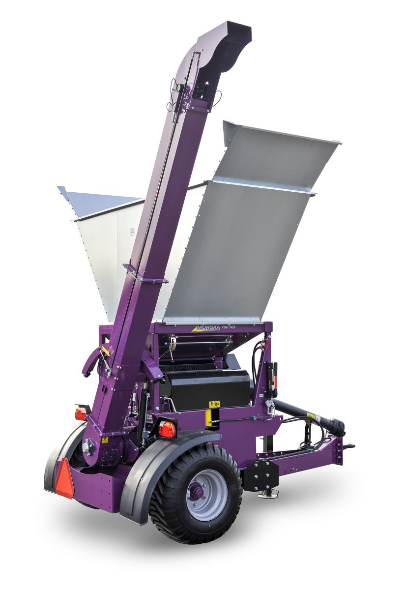 Машина для плющения зерна Murska 700 HD (с элеватором), снабжена вальцами барабанного типа, мельница без колес, имеет 3-х точечную навеску, и обычно работает от трактора. Эта модель, в первую очередь, предназначена для плющения влажного зерна.